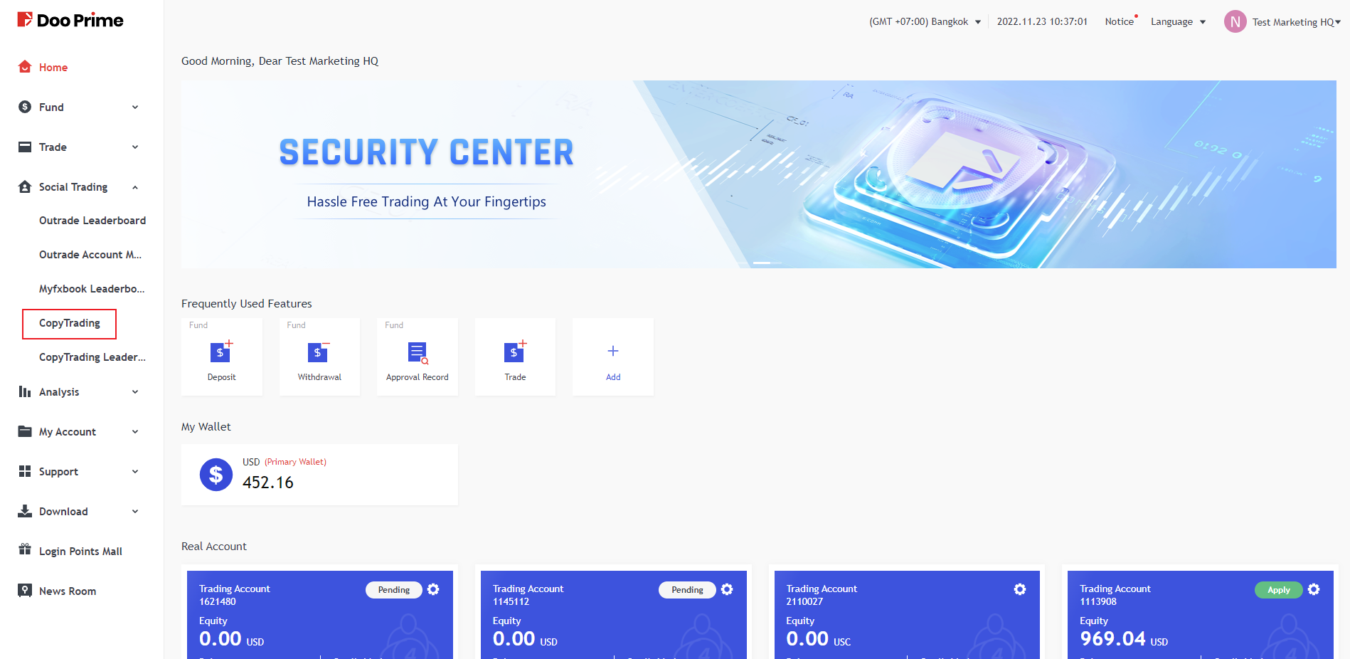 1. يمكنك اختيار تسجيل الدخول إلى CopyTrading من خلال شريط القائمة الأيسر في Doo Prime User Center.