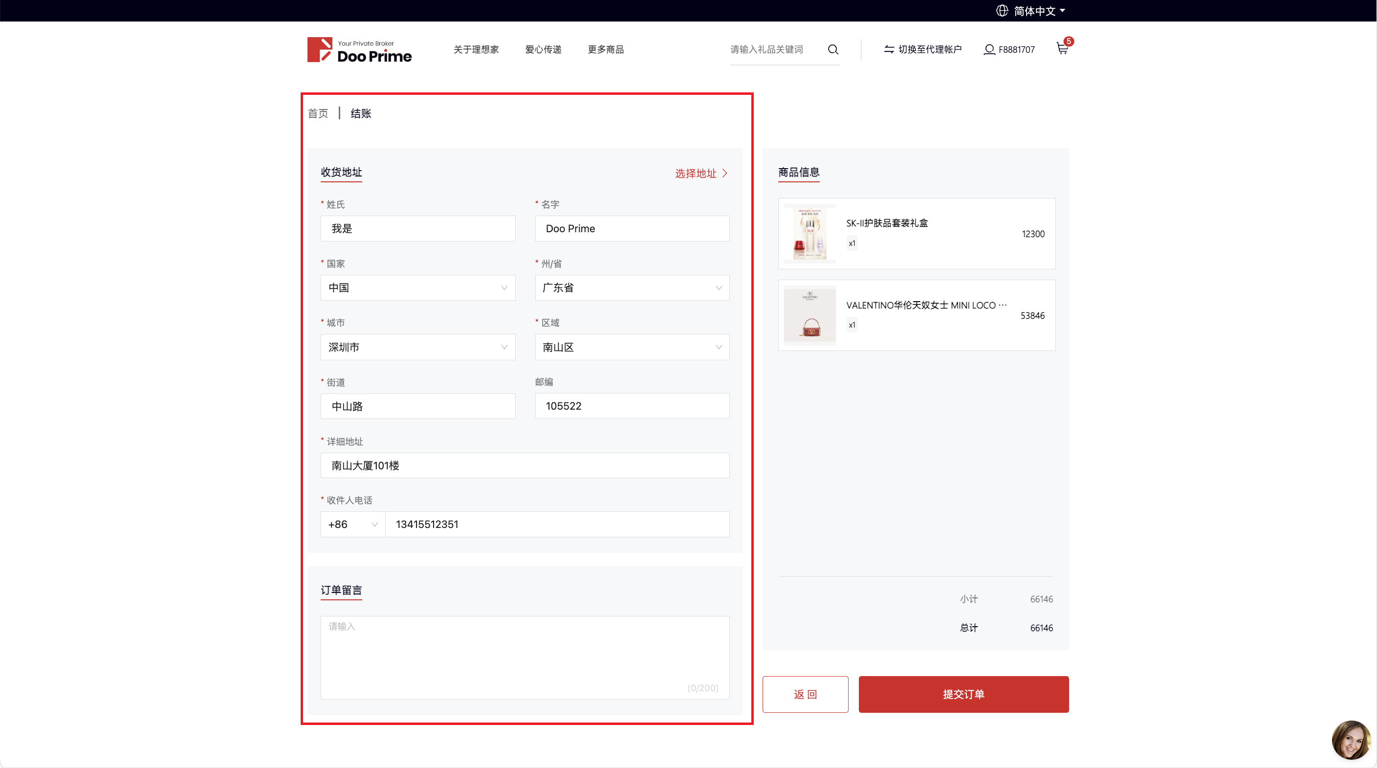 4. Simply fill in the delivery information and submit the order. You can also set a default address and store up to 20 custom addresses.