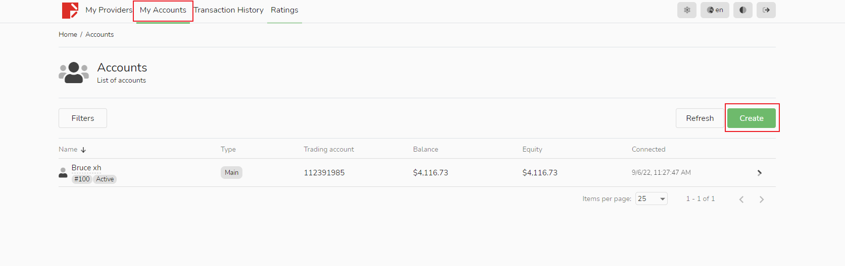 1. You can log in to CopyTrading, under the "My Account" column, click the green button "Create" on the right.