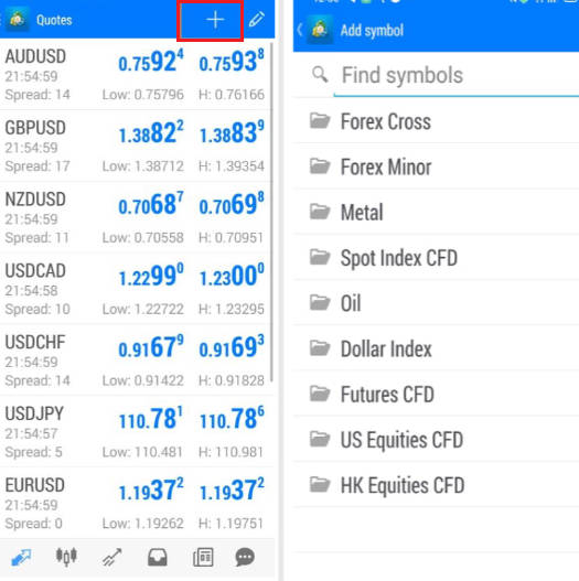 Click the icon in the upper right corner and choose to add a trading variety; the Doo Prime platform includes currency pairs, precious metals, crude oil, etc., which can be added by yourself.