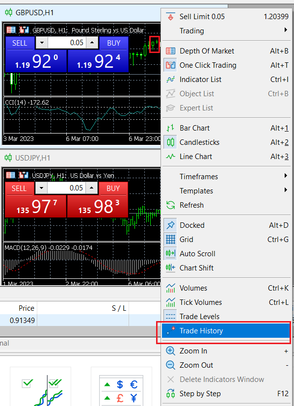 If you do not need this function, you can close it in the following way: hover the mouse on the blank space of the chart, right-click, and remove the checked [Trading History]: