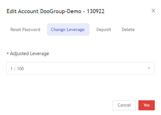 계정의 오른쪽 상단에서 톱니바퀴를 클릭하고 새 레버리지를 선택한 다음 확인을 클릭합니다.