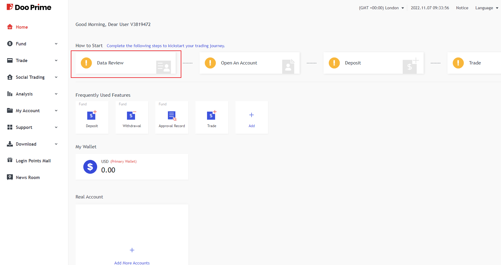 3.1 D Prime 사용자 센터 홈페이지에서 “데이터 검토”를 클릭하세요.