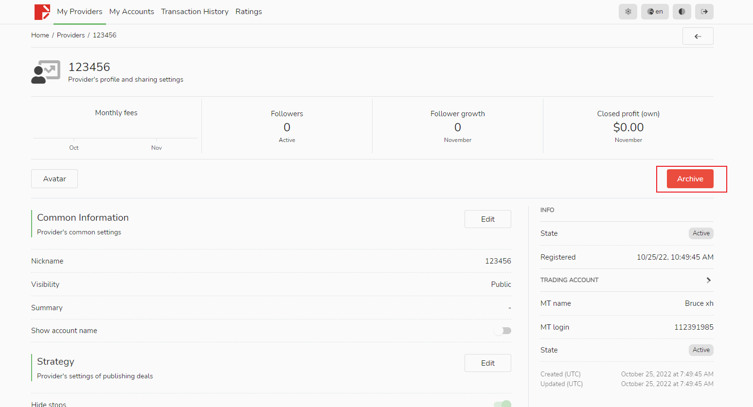 1. Na guia "Minhas fontes", clique na estratégia de sinal que deseja arquivar.