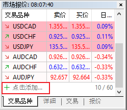 1. 在市场报价的窗口下直接添加相关交易品种的代码: