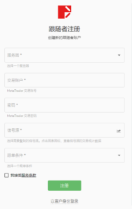 - 交易賬戶:填寫MetaTrader 交易賬號