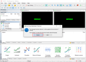 完成選擇後會有彈窗提示用戶重新啟動MT5 ,請點擊【Restart】重新啟動。